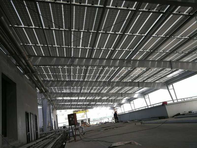 廣東汕頭拉飛逸光伏U型玻璃屋頂1350平方米,單晶硅裝機(jī)容量216千瓦。