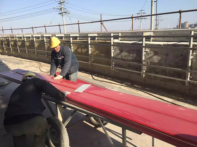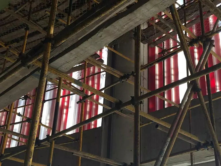 一般多采用穿孔鋁板,但是這種材料造價(jià)較高。我們選擇了更加環(huán)保的水泥纖維板,造價(jià)不僅大大降低,而且其更加結(jié)實(shí)、平整?!?/span>
