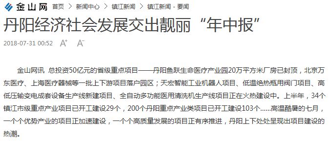 總投資50億元的省級(jí)重點(diǎn)項(xiàng)目——丹陽(yáng)魚躍生命醫(yī)療產(chǎn)業(yè)園20萬(wàn)平方米廠房已封頂,北京萬(wàn)東醫(yī)療、上海醫(yī)療器械等一批上下游項(xiàng)目落戶園區(qū);天宏智能工業(yè)機(jī)器人項(xiàng)目、低溫絕熱瓶用閥門項(xiàng)目、高低壓輸變電成套設(shè)備生產(chǎn)線新建項(xiàng)目、全自動(dòng)多功能醫(yī)用清洗機(jī)生產(chǎn)線項(xiàng)目正在火熱建設(shè)中。
